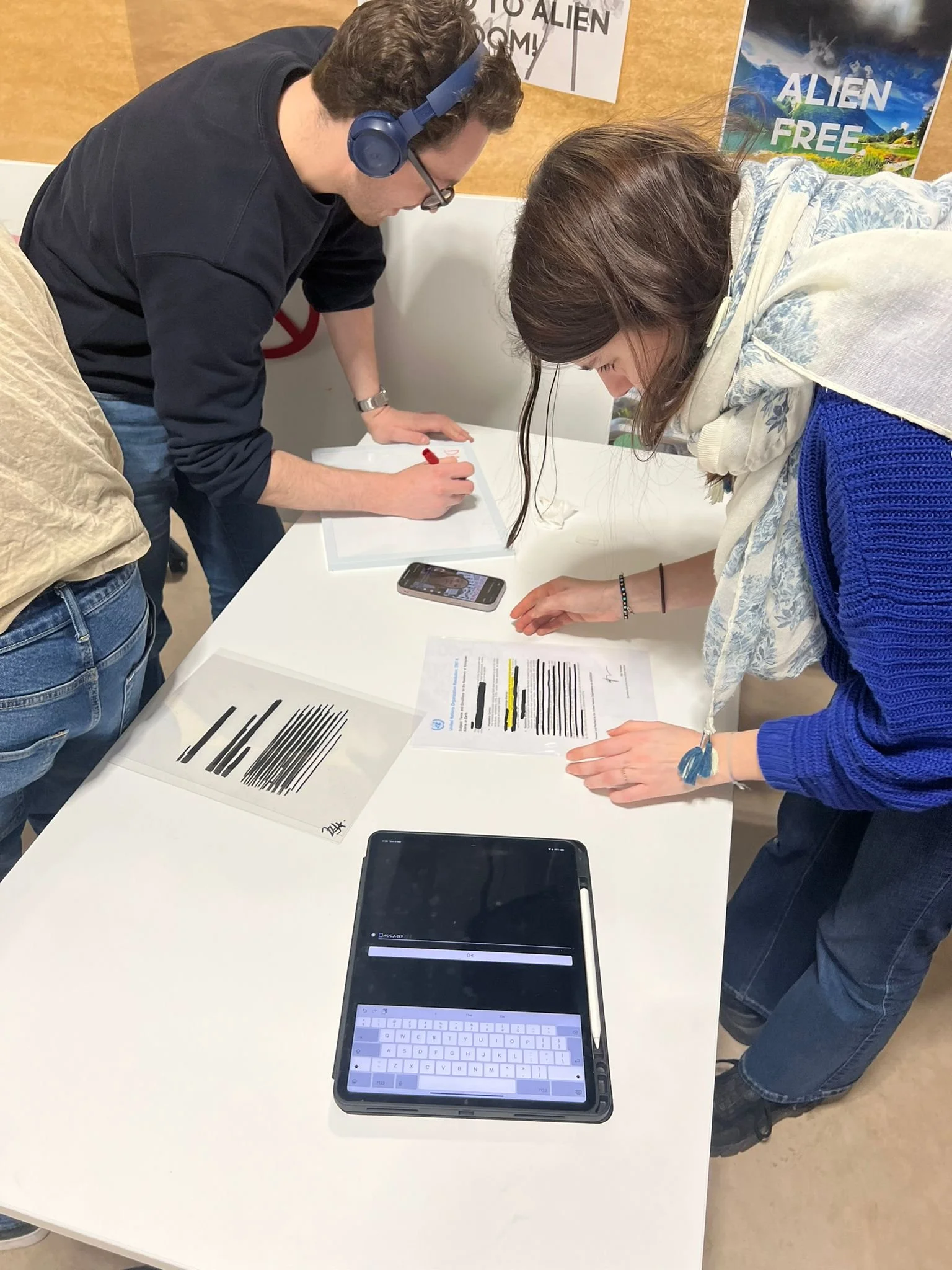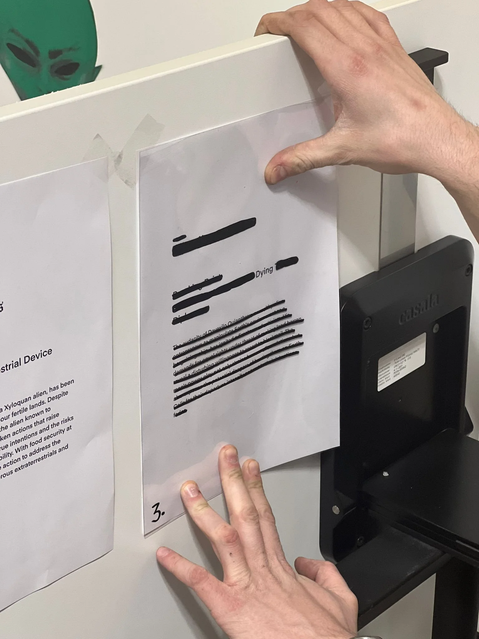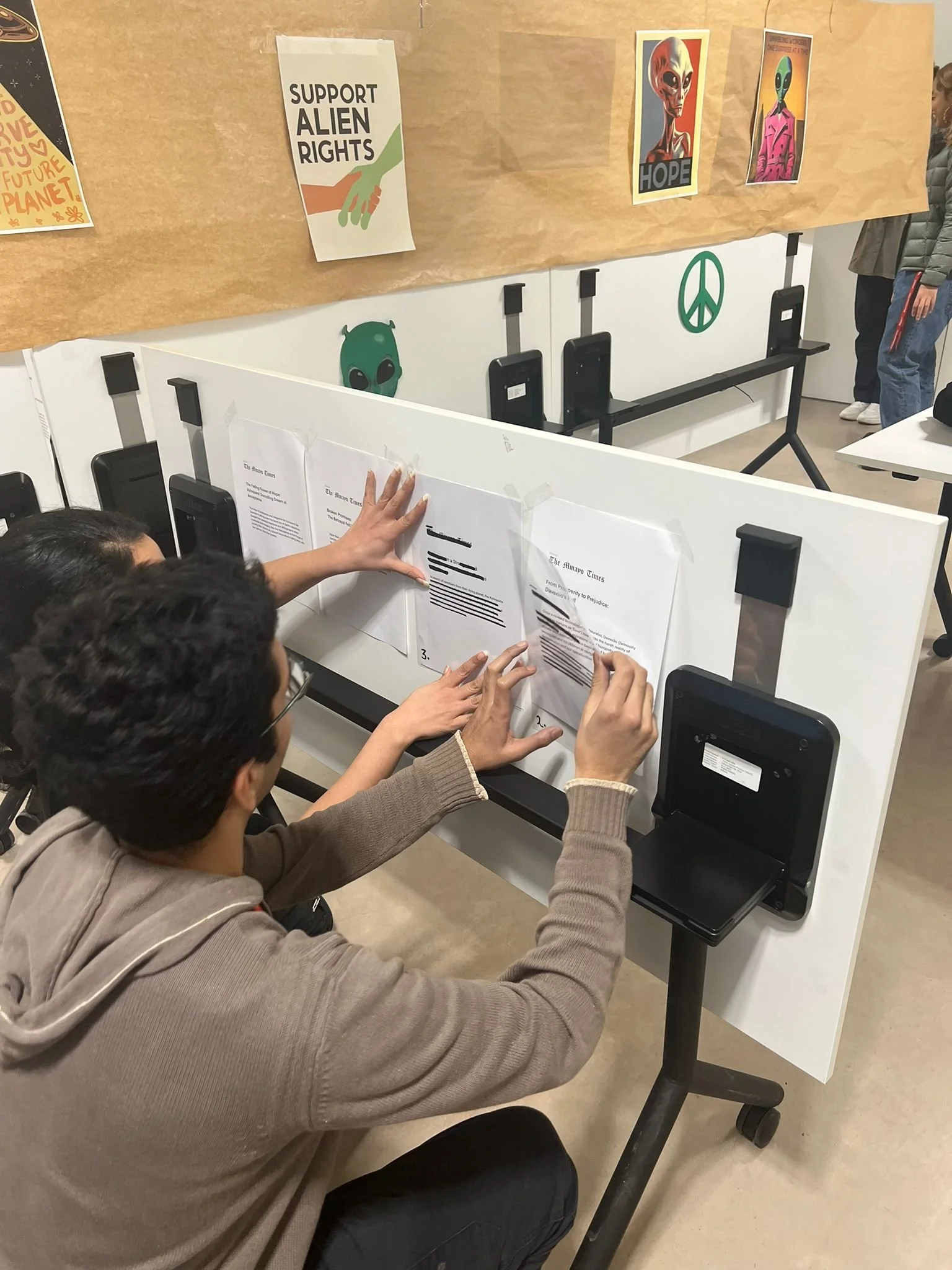 After conducting two separate prototyping sessions with teams of six, split into two groups of three on each side of the room, the escape room proved highly successful. Each team was unknowingly given different information about the same alien invasion scenario—one group received a narrative framing the invasion as positive, while the other saw it as negative.